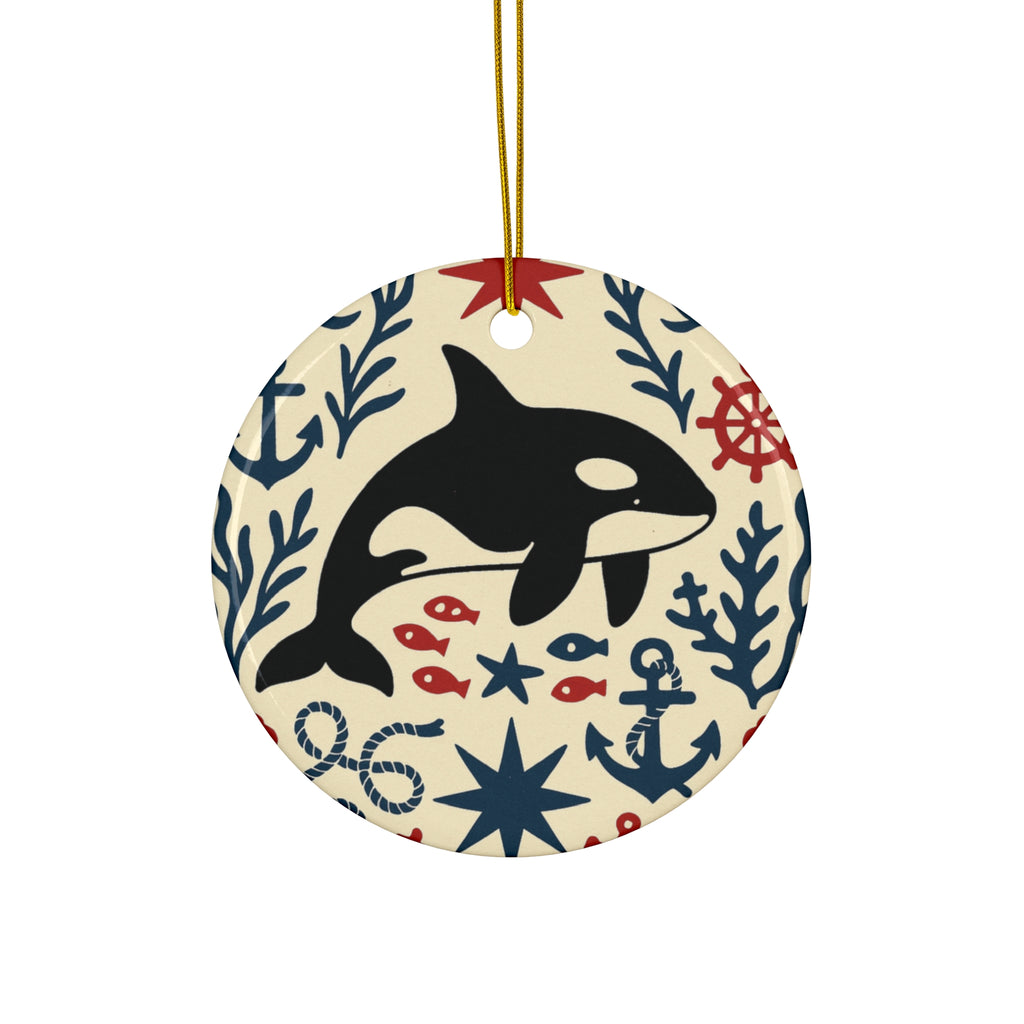 Orca Nautical Decoration, Holiday Gift, Home Decor, Christmas Tree Decor, Whale Lover Gift, Ceramic Ornament,