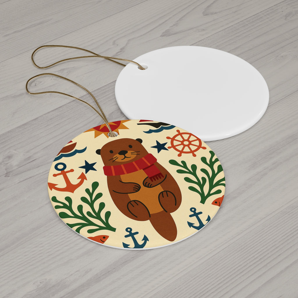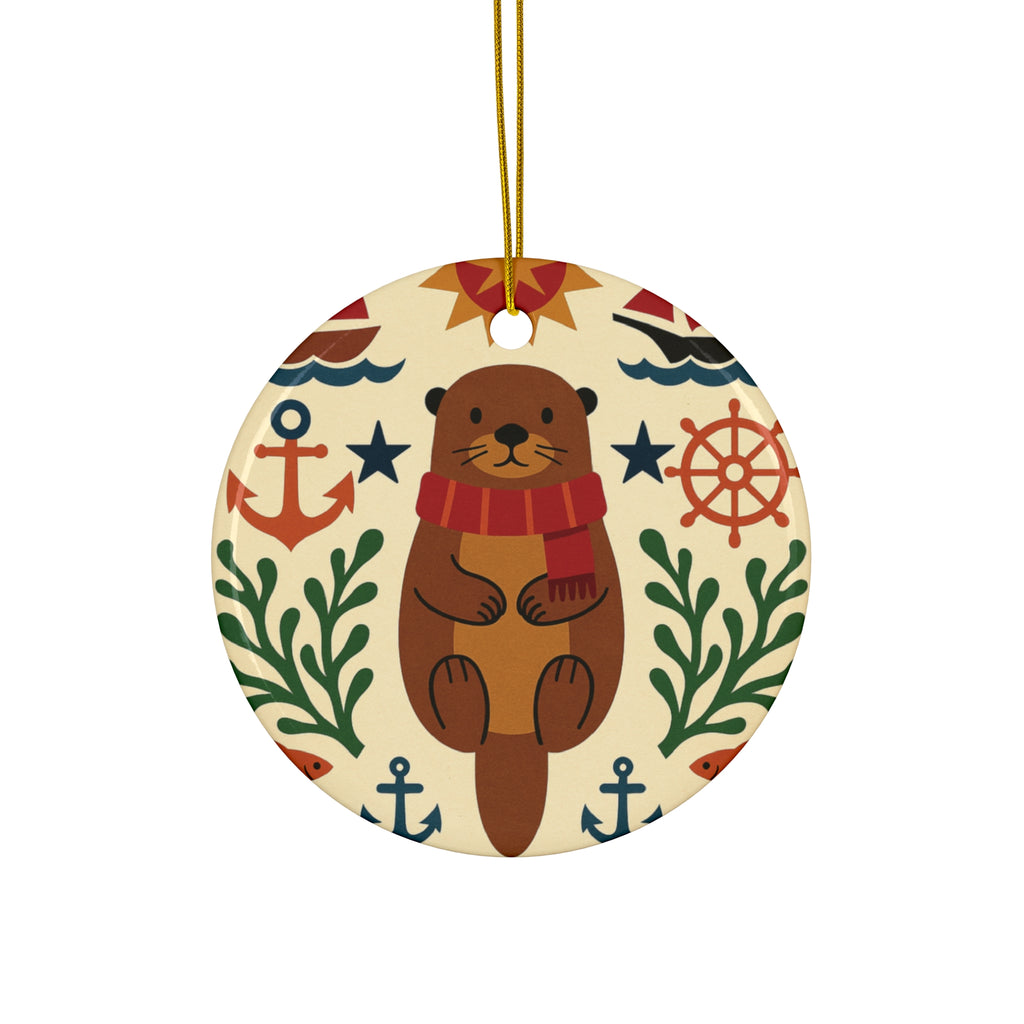Otter Christmas Ornament – Nordic Folk Art Animal Ornament, Scandinavian Coastal Holiday Decor, Seaside Winter Gift, Ceramic Tree Ornament