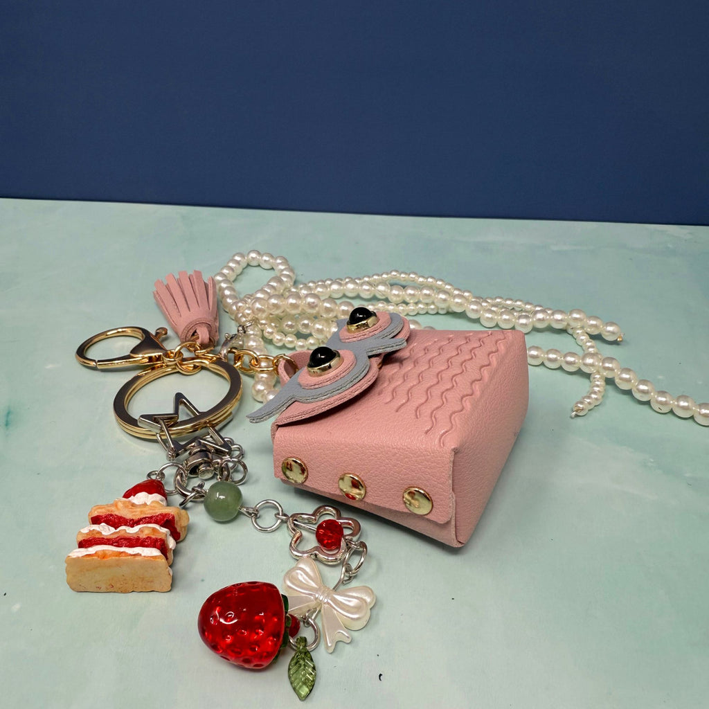 Plush Cheese & Bread Keychain Set – Soft Food-Inspired Bag Charms with Gold Hardware