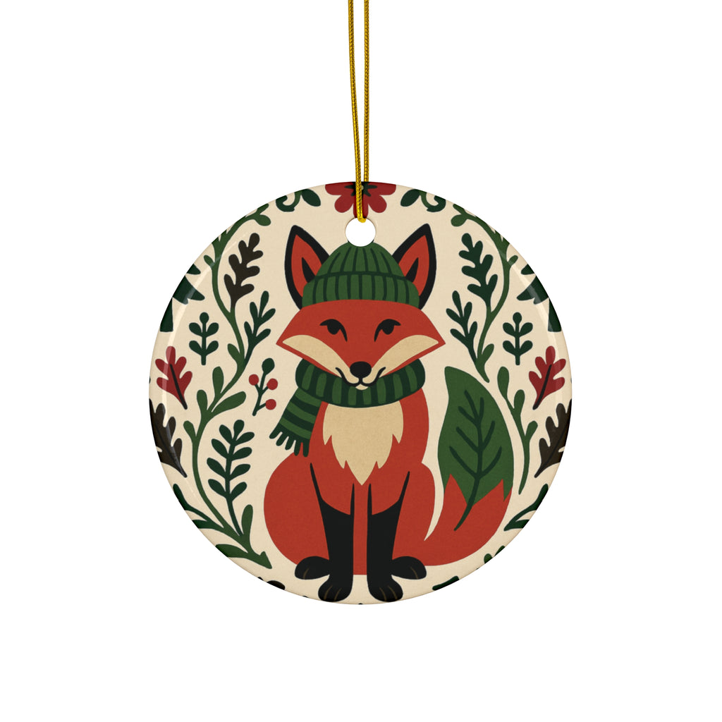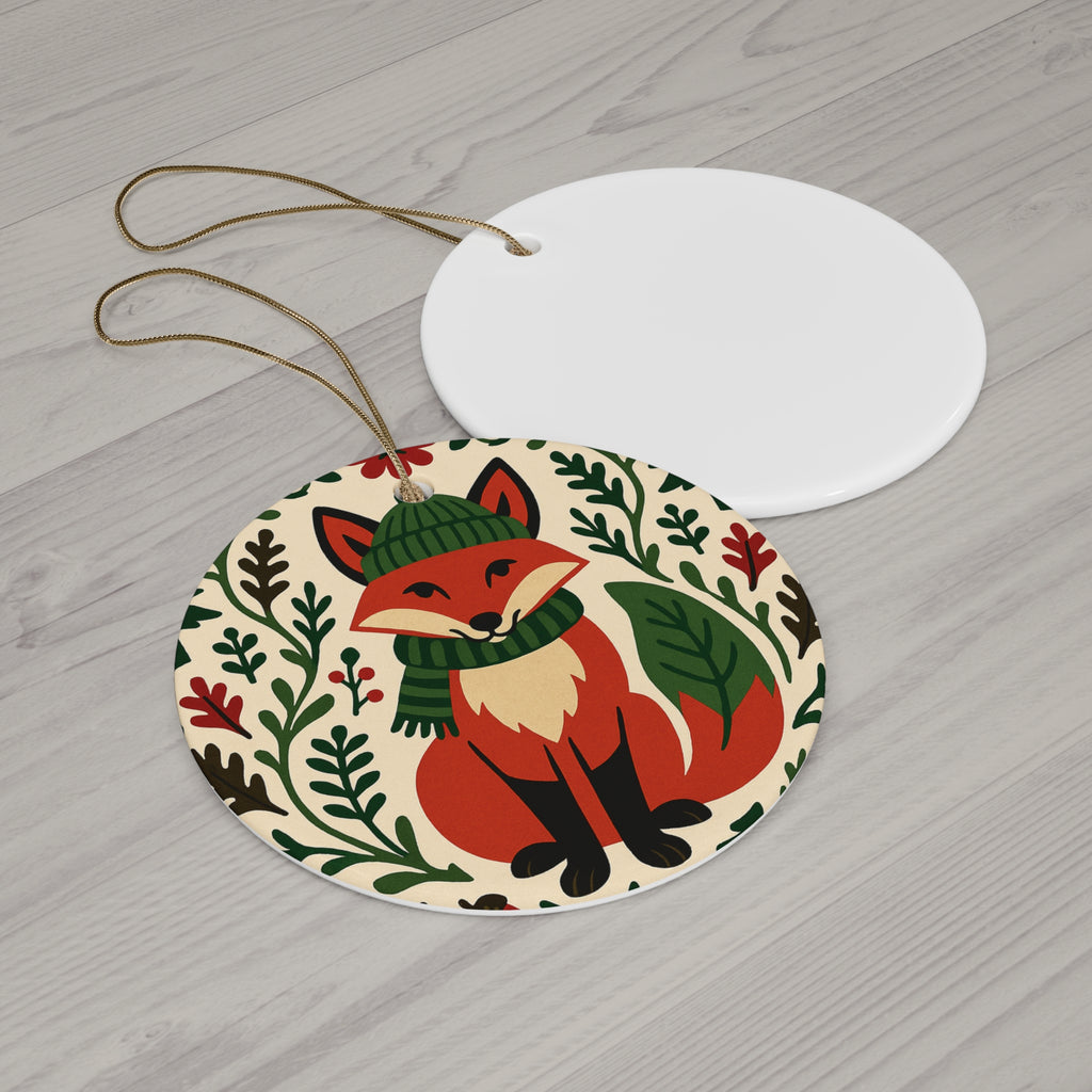 Fox Christmas Ornament – Nordic Folk Art Woodland Animal Ornament, Scandinavian Holiday Decor, Cozy Winter Gift, Ceramic Tree Decoration
