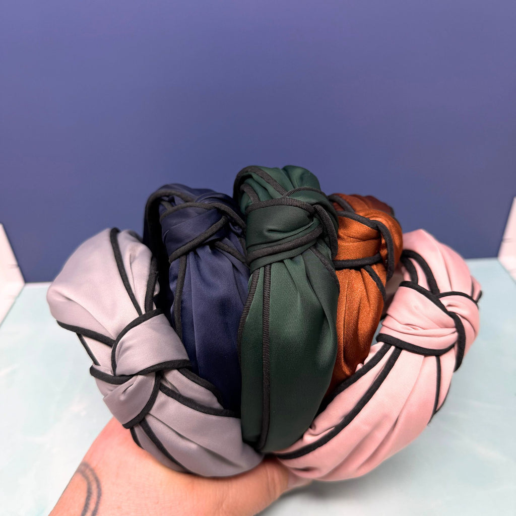 Satin Top Knot Headband with piping – Jewel Tones & Neutrals