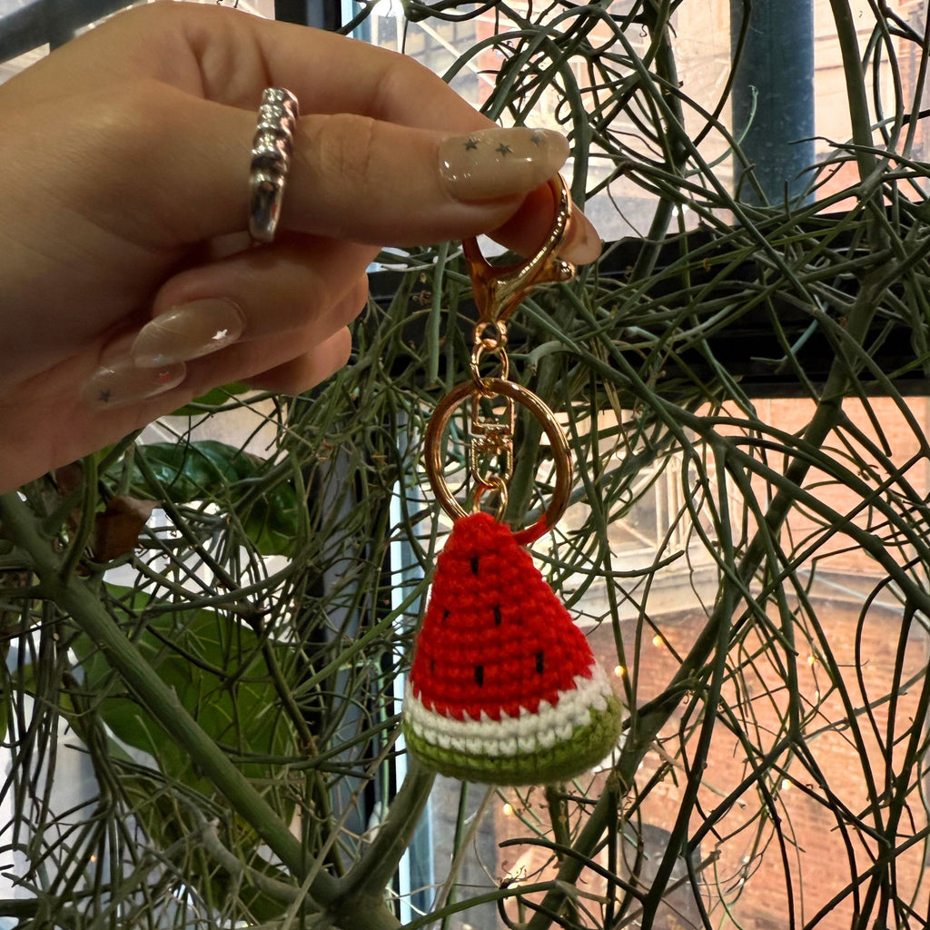Crochet Watermelon Keychain – Handmade Fruit Charm with Gold Clip for Bags & Backpacks