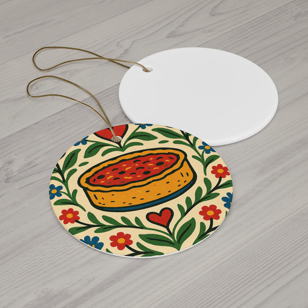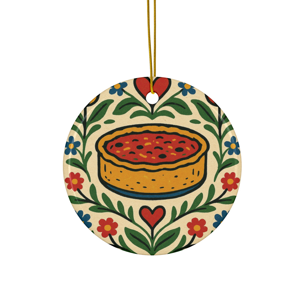 Deep Dish Pizza Ceramic Ornament – Chicago-Style Folk Art Décor