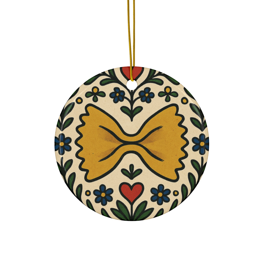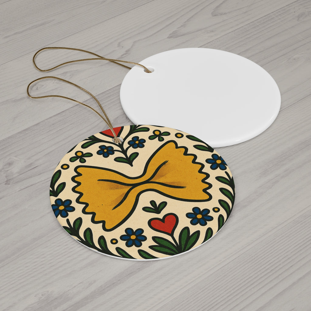 Farfalle Pasta Ceramic Ornament – Bowtie Noodle Folk Art Holiday Décor