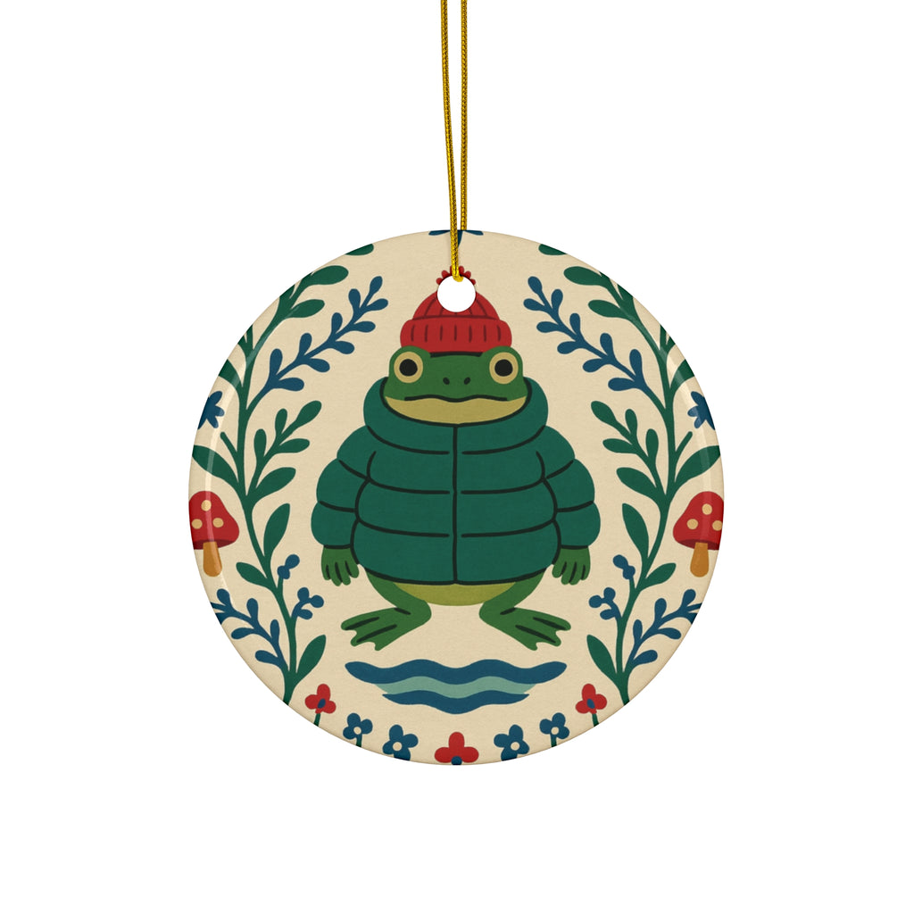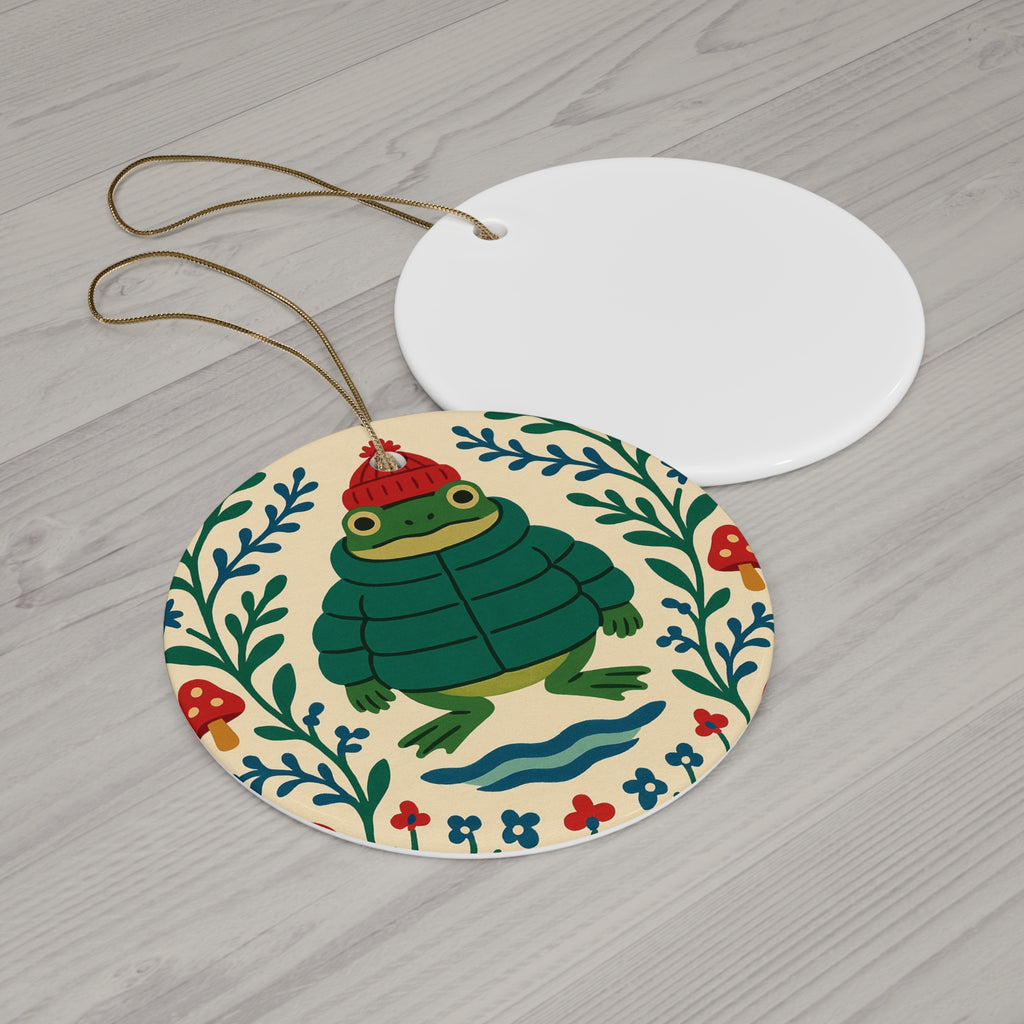 Frog Ceramic Ornament, Cute Christmas Tree Decoration, Holiday Gift, Festive Decor, Animal Lover Ornament, Winter Decor