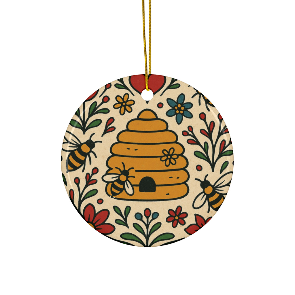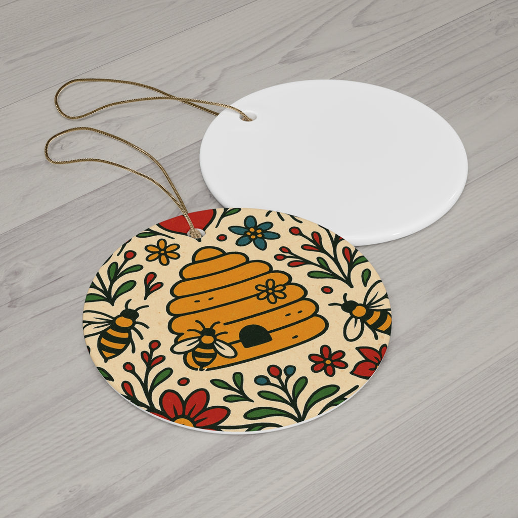 Beehive Ceramic Ornament – Honeybee Folk Art Garden Holiday Décor