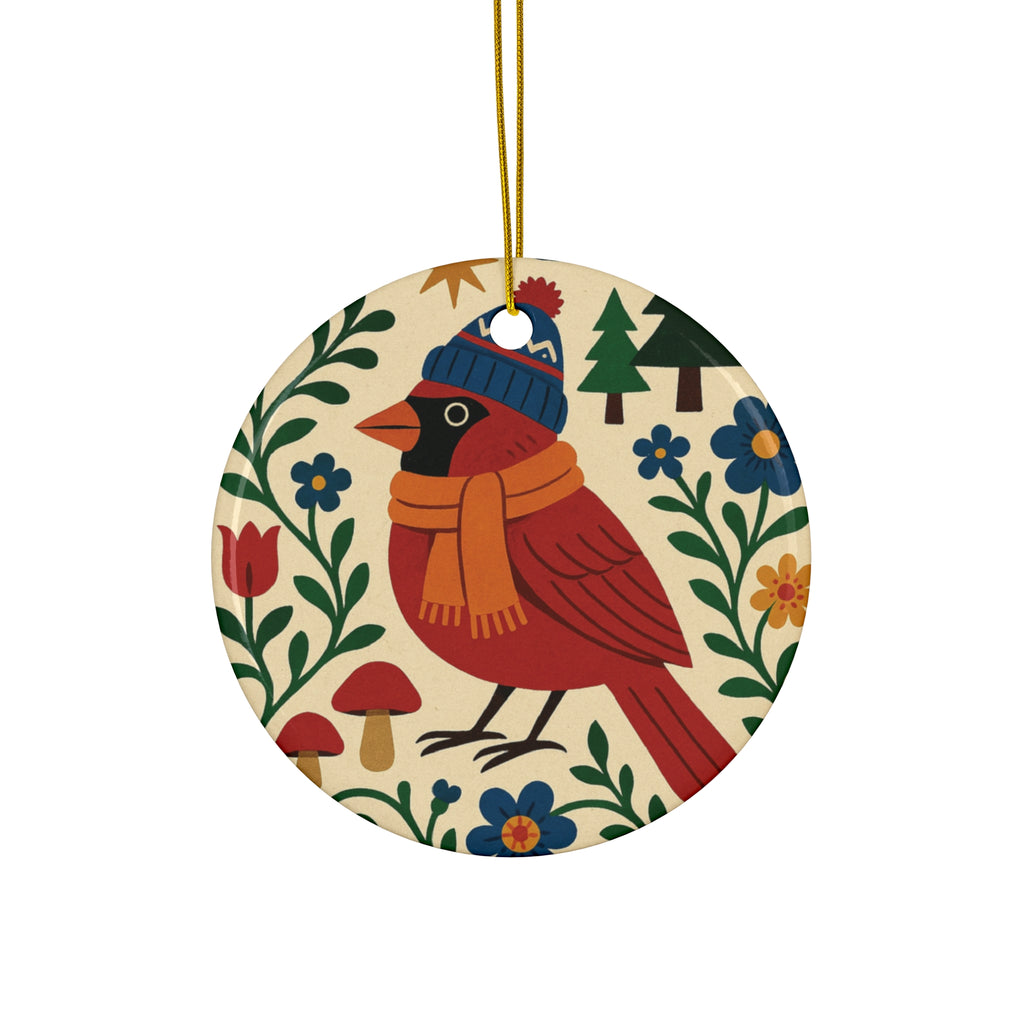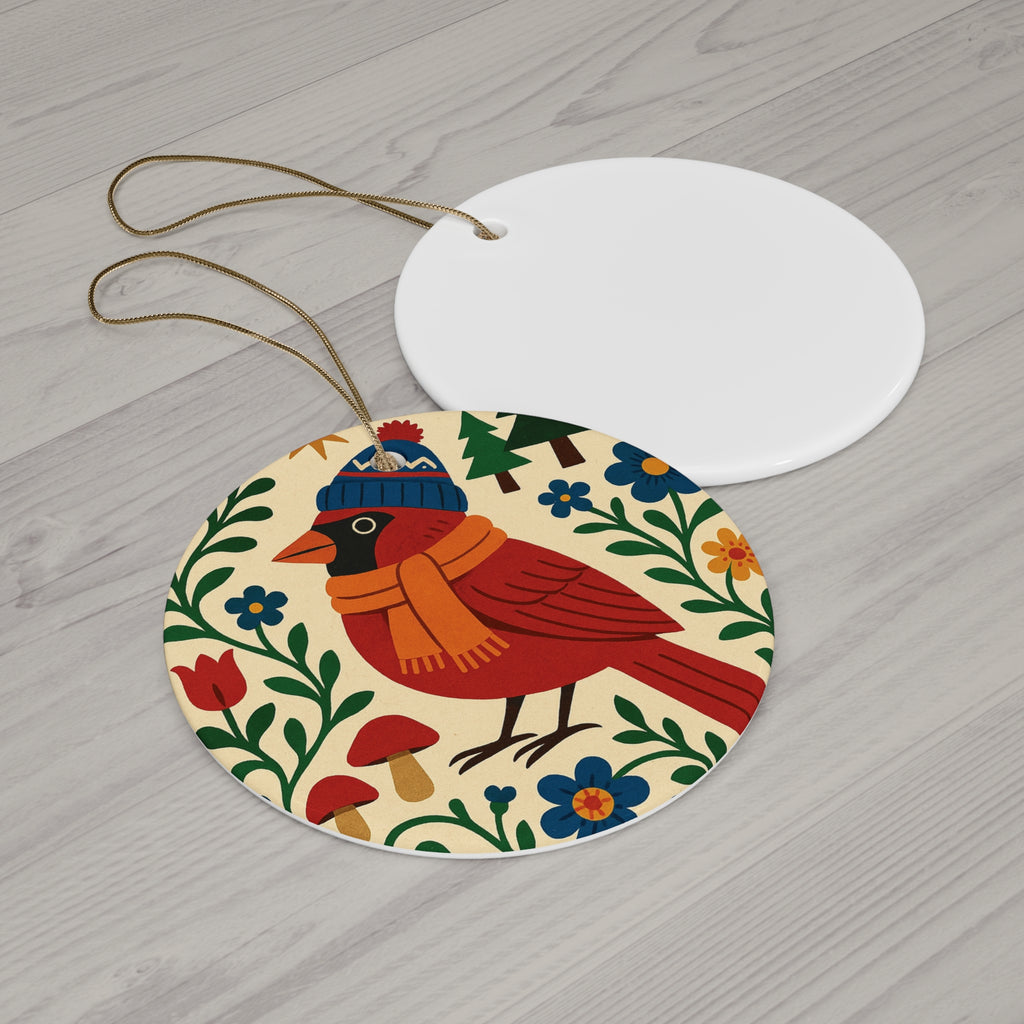 Cardinal Christmas Ornament Nordic Folk Art Bird Ornament, Woodland Holiday Decor, Scandinavian Ceramic Ornament, Cozy Winter Gift