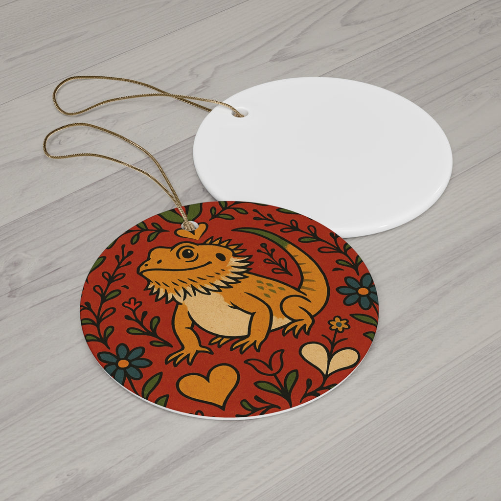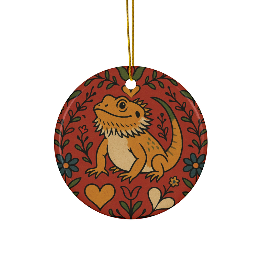 Bearded Dragon Ceramic Ornament – Folk Art Lizard Christmas Décor