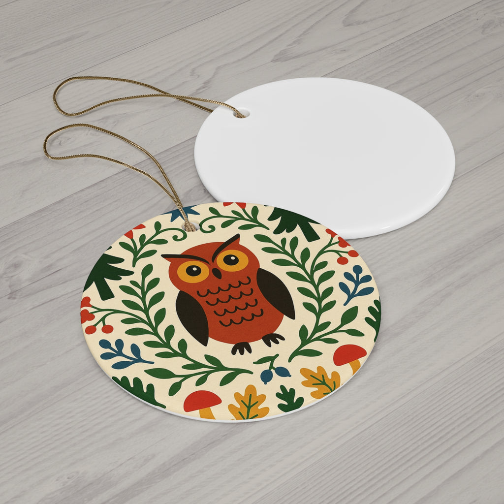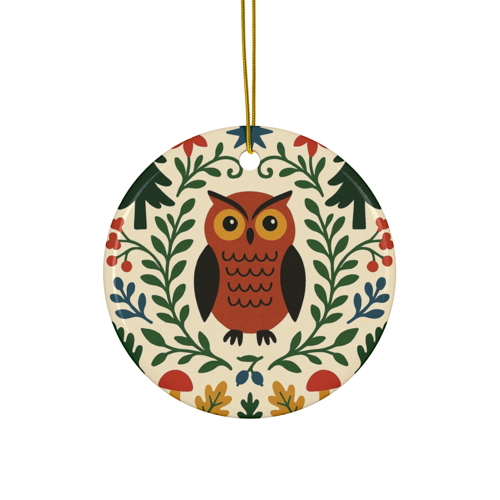Brown Owl Christmas Ornament – Nordic Folk Art Woodland Bird Ornament, Scandinavian Holiday Decor, Cozy Winter Gift, Ceramic Tree Ornament