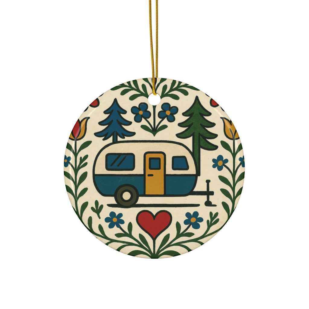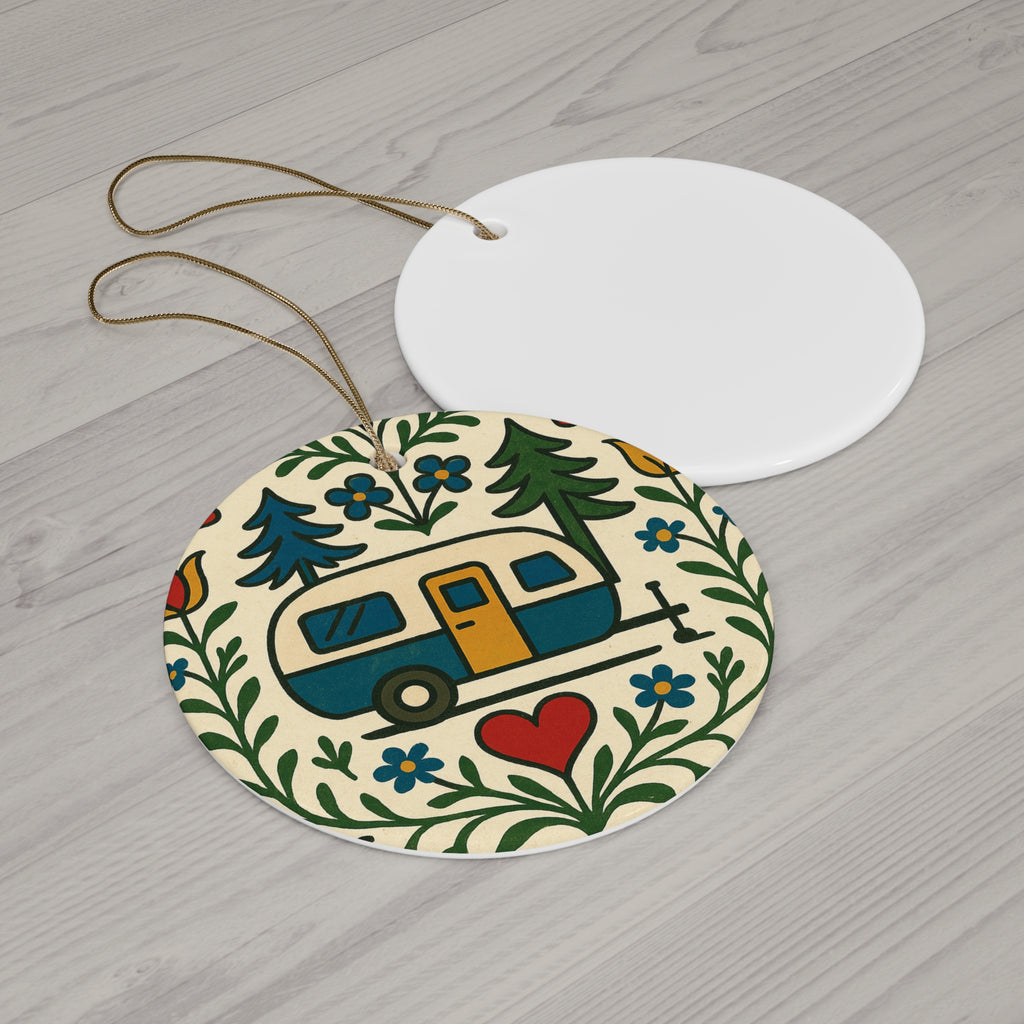 Camper Ceramic Ornament – Folk Art Retro Trailer Christmas Décor