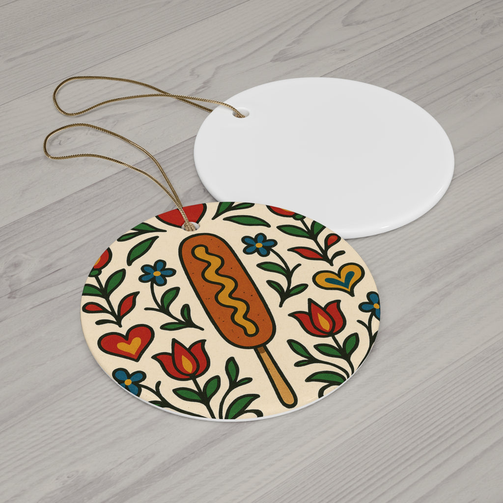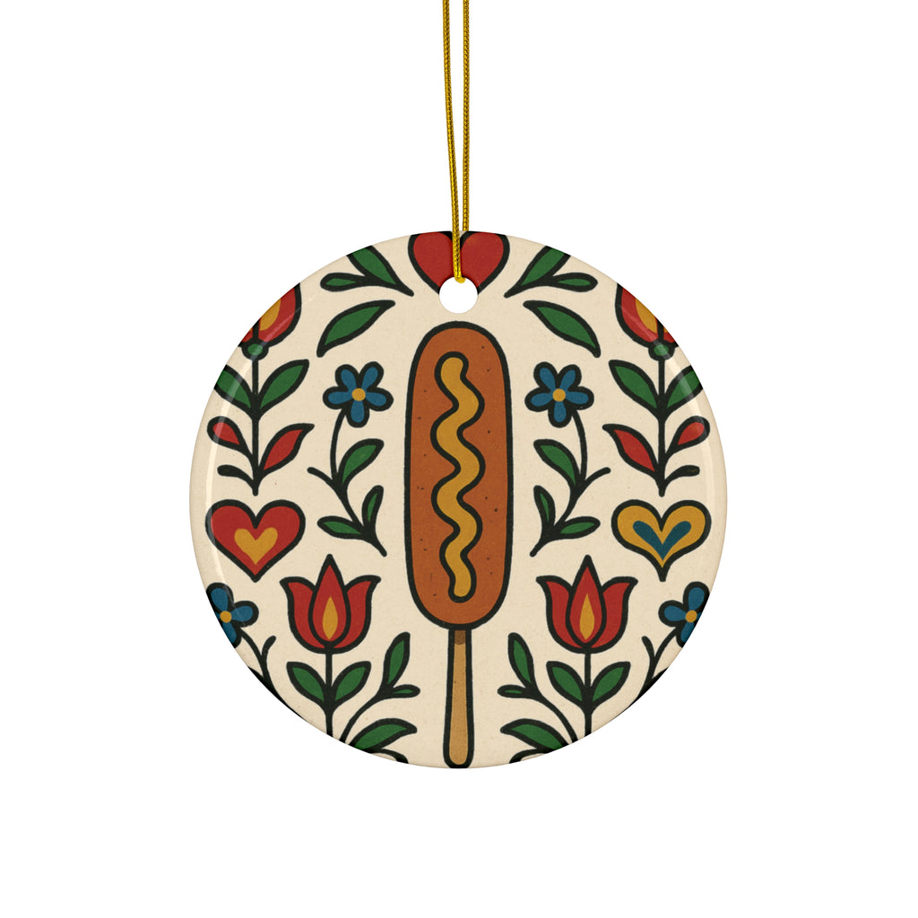Corn Dog Ceramic Ornament – Folk Art Fair Food Christmas Decoration