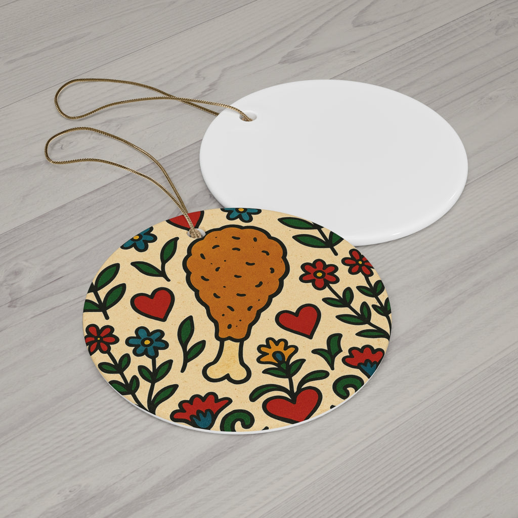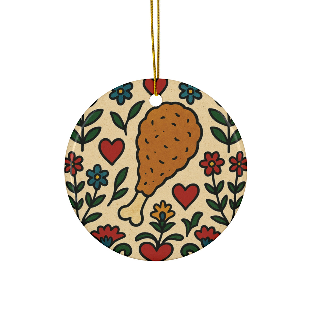 Fried Chicken Drumstick Ceramic Ornament – Southern Comfort Folk Art Holiday Décor
