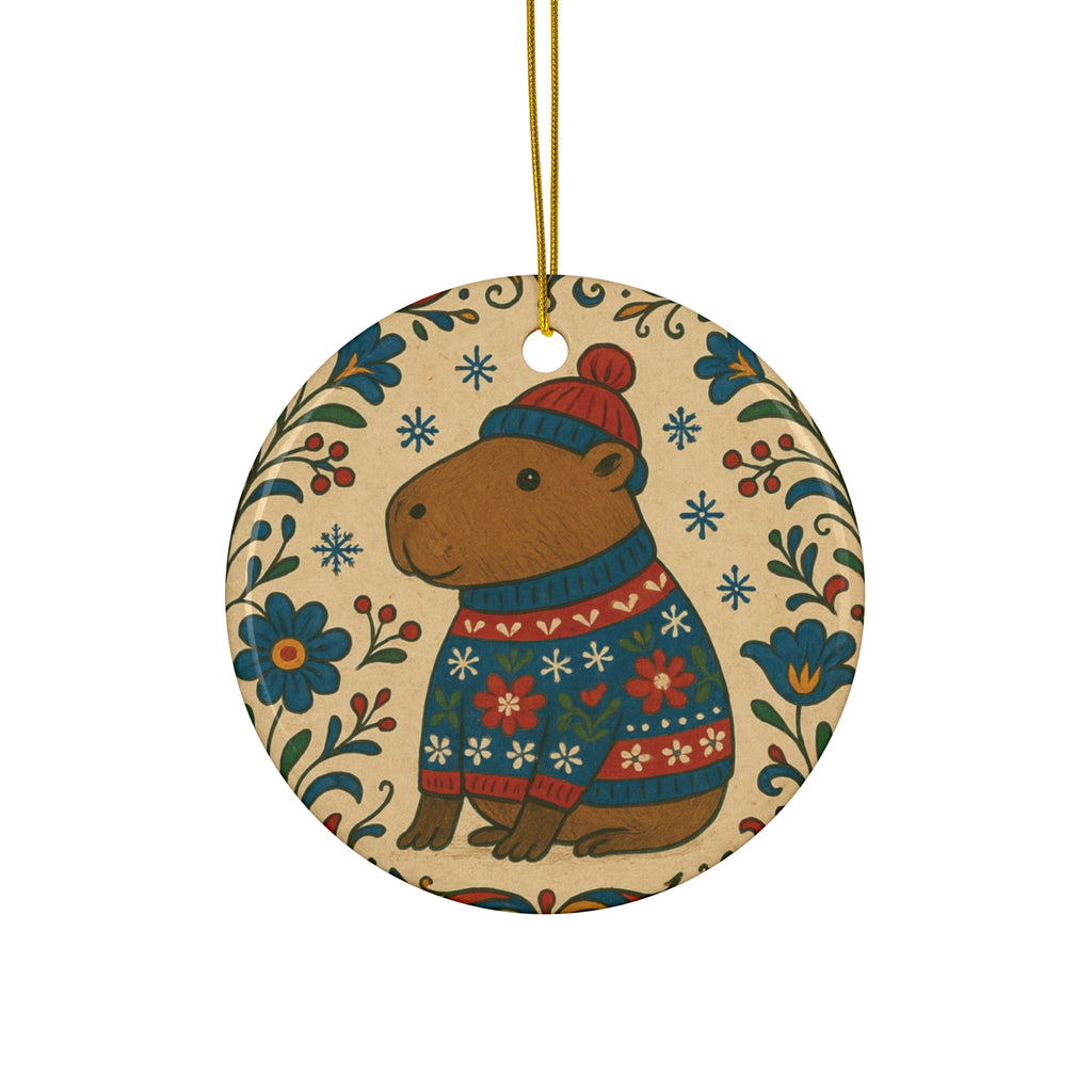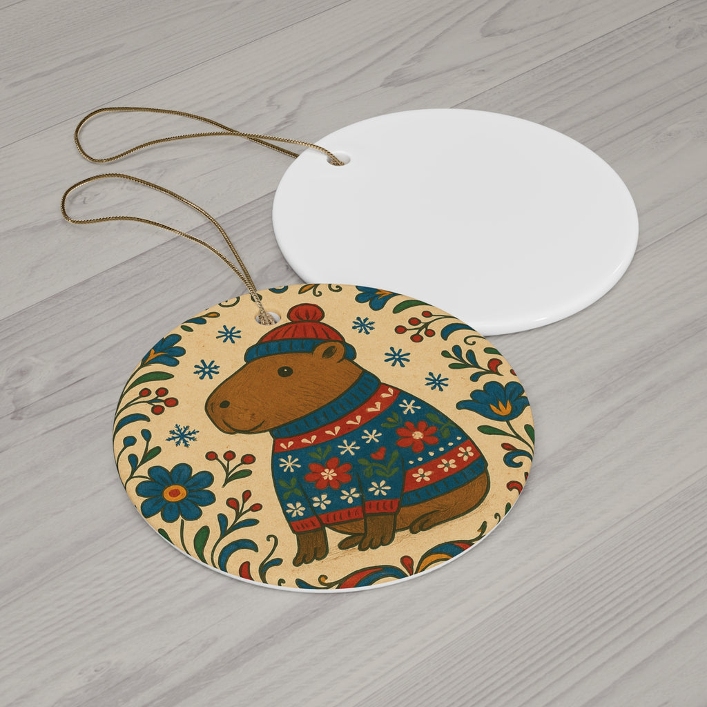 Capybara Nordic Scandinavian Style Christmas Decoration, Minimalist Swedish Ornament, Holiday Capybara Decor, Cute Animal, Ceramic Ornament