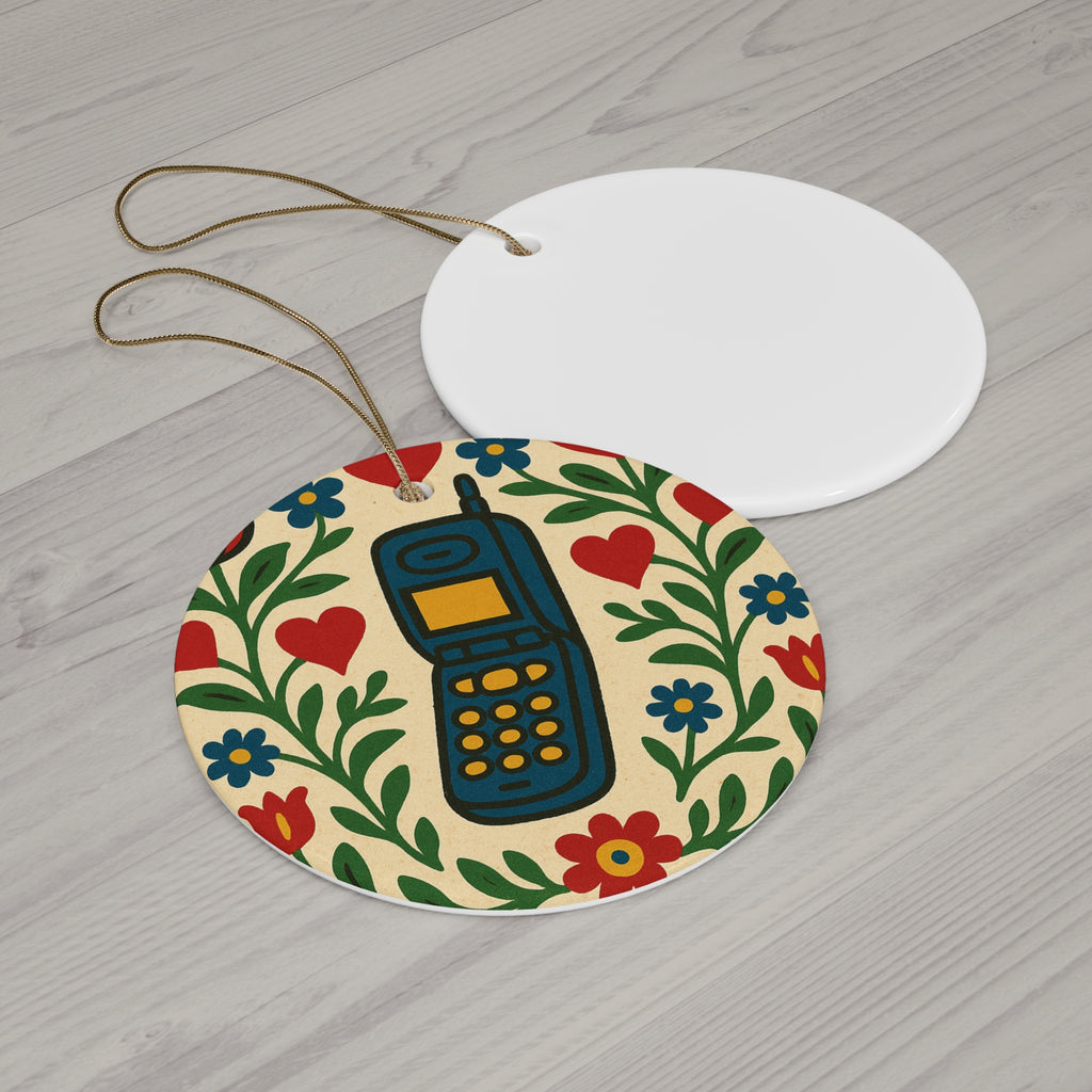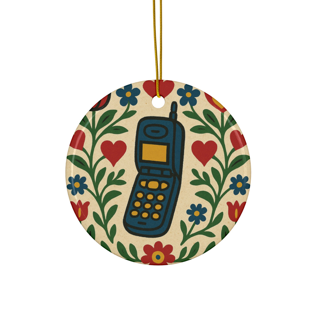 Flip Phone Ceramic Ornament – Retro 2000s Folk Art Holiday Décor