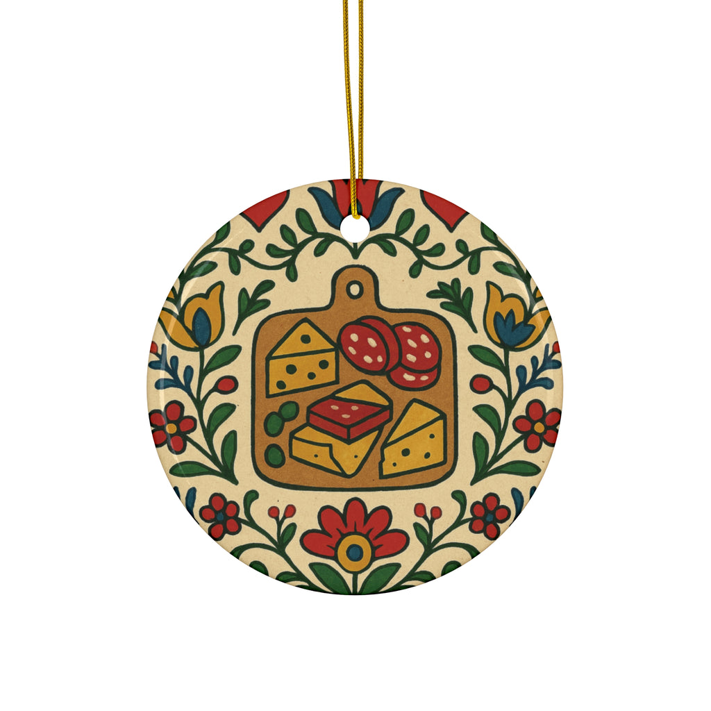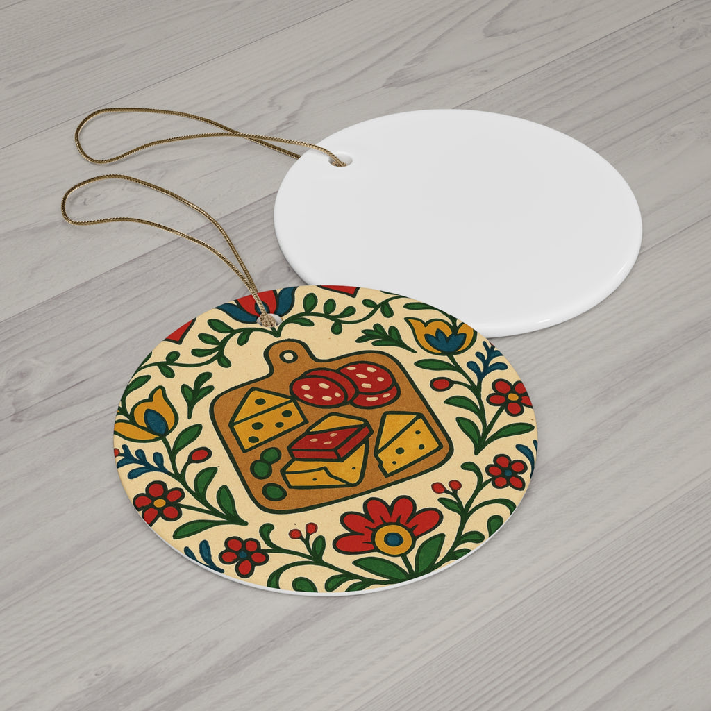 Charcuterie Board Ceramic Ornament – Cheese and Salami Folk Art Holiday Décor
