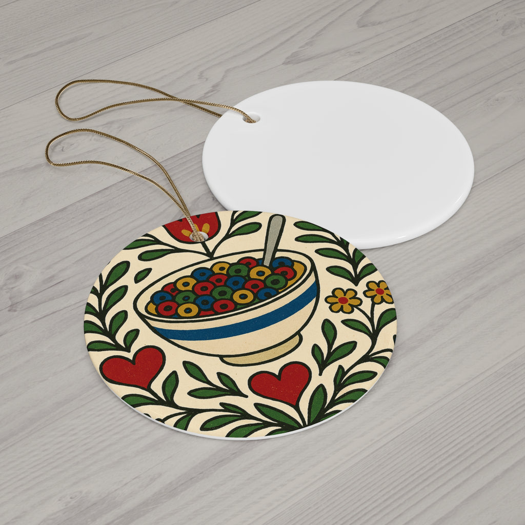 Cereal Bowl Ceramic Ornament – Whimsical Breakfast Folk Art Décor
